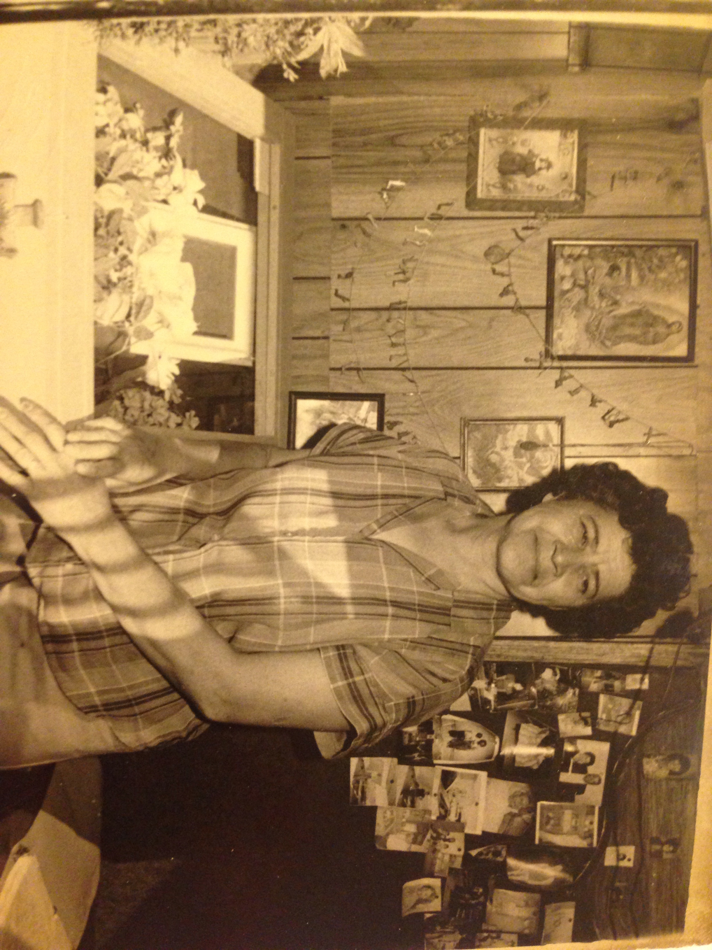 My mom, Maria, inside the capilla where the shrine of the Jesus tortilla was kept. In the background, you see pictures and charms left by many who were looking to be healed from whatever illness, difficulty, etc, they were facing.